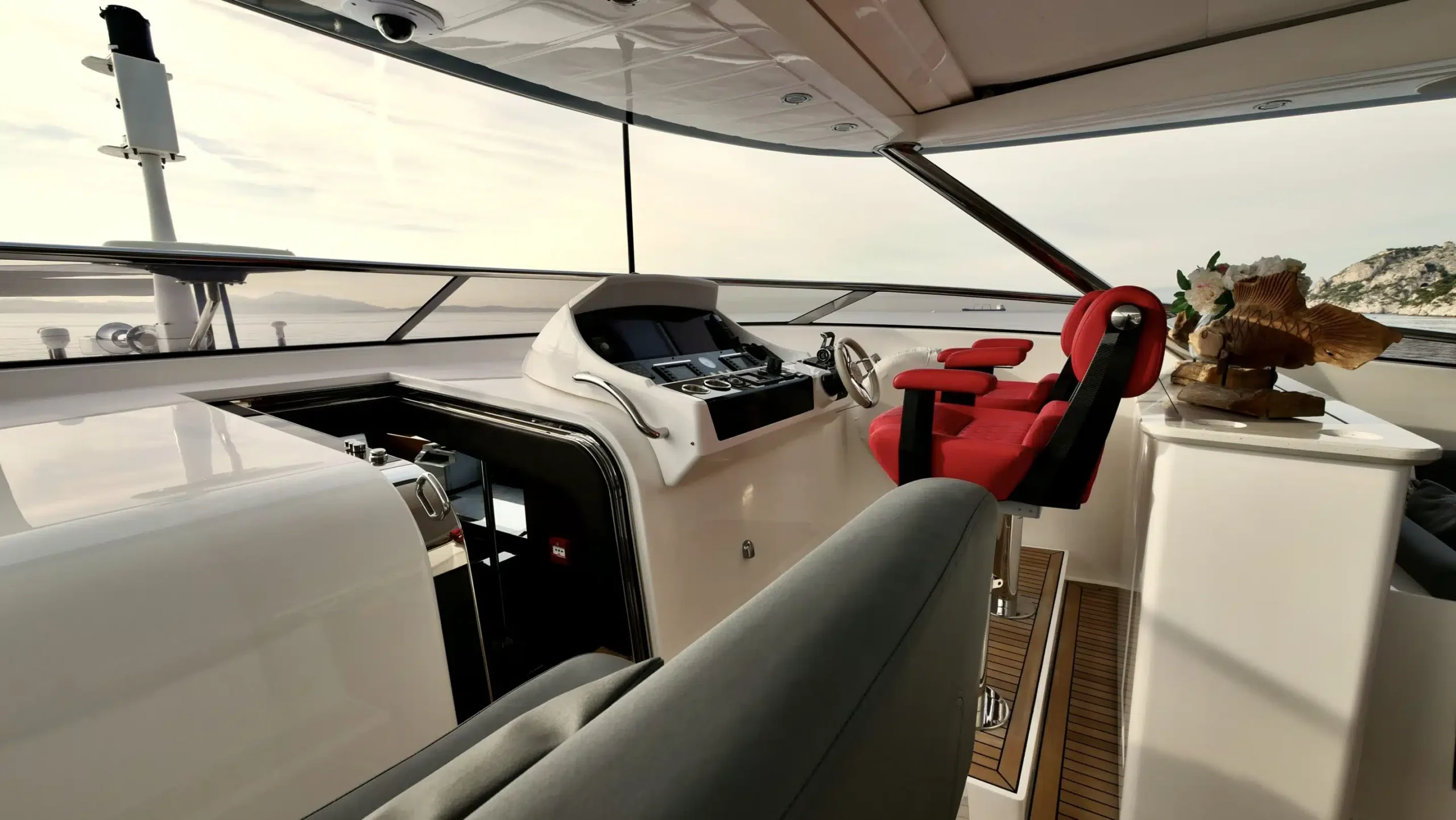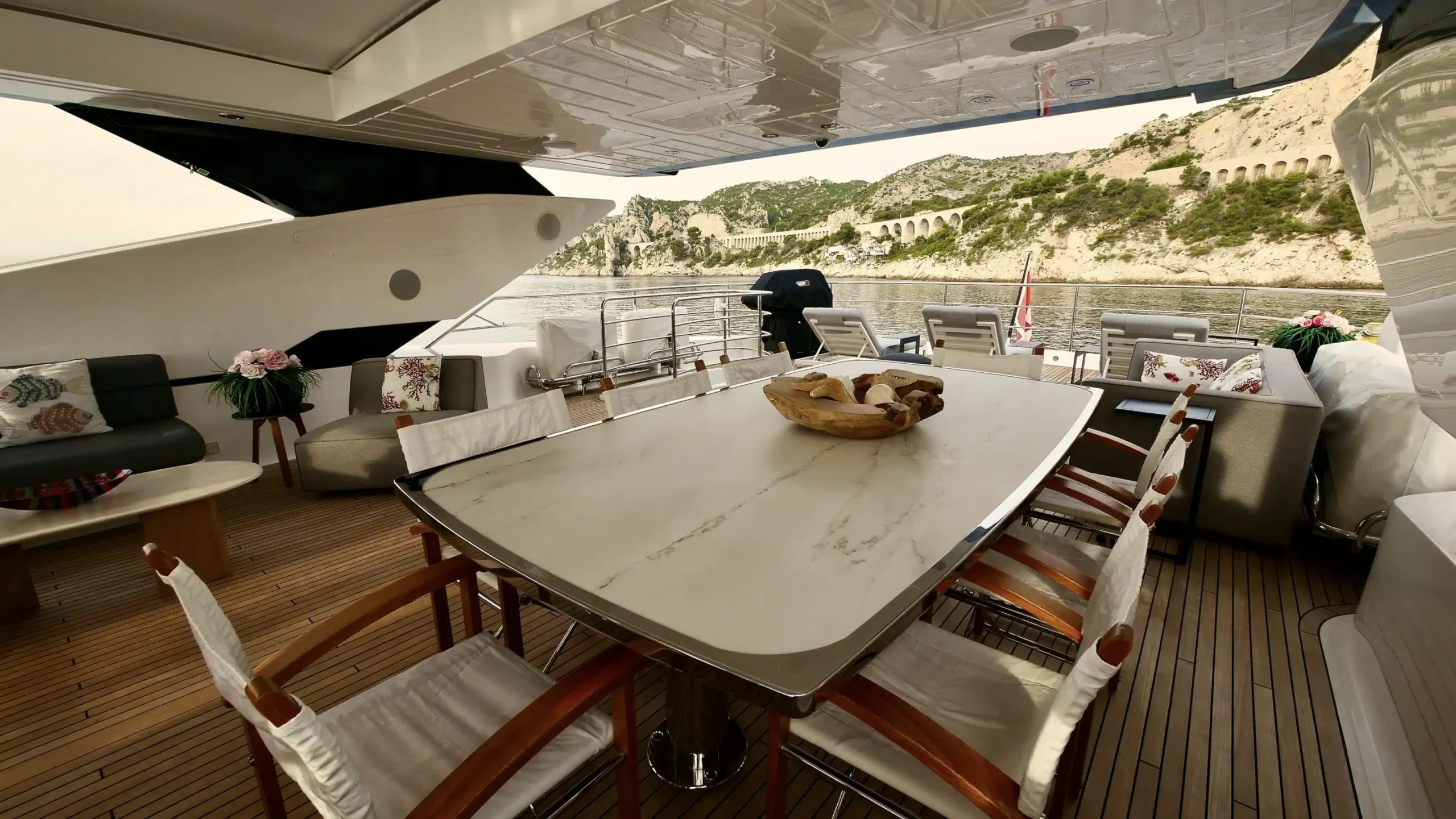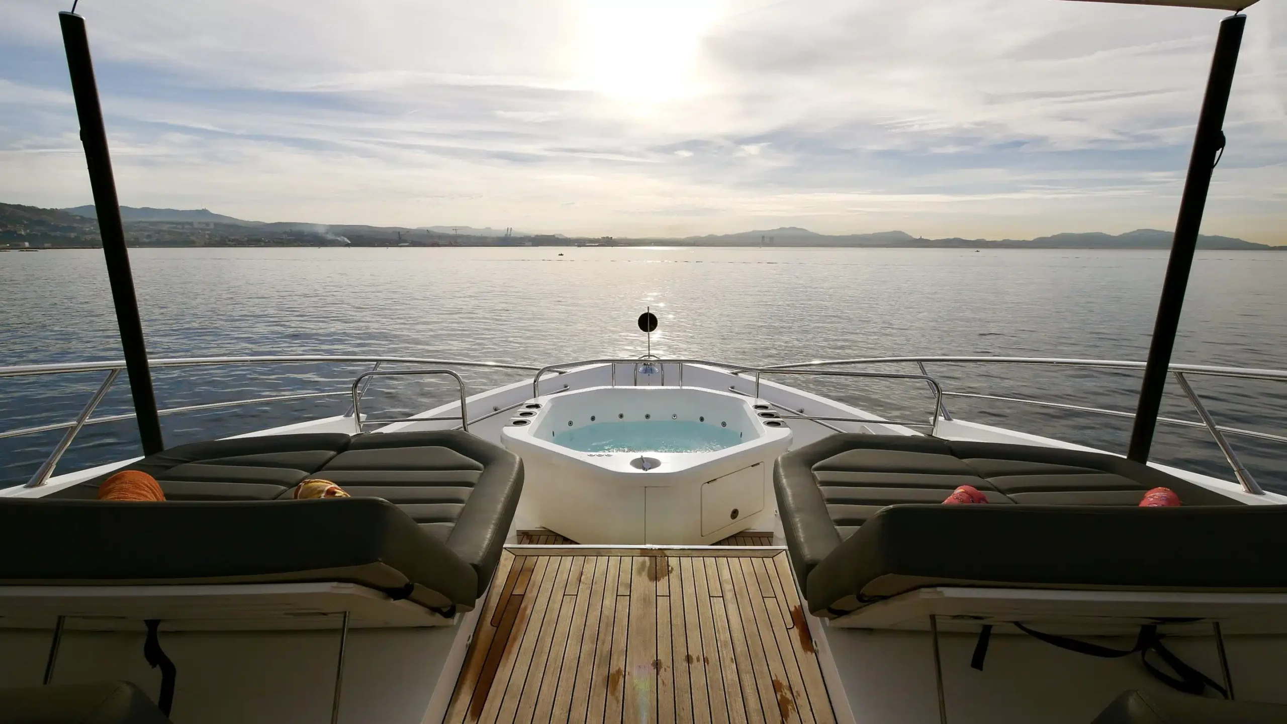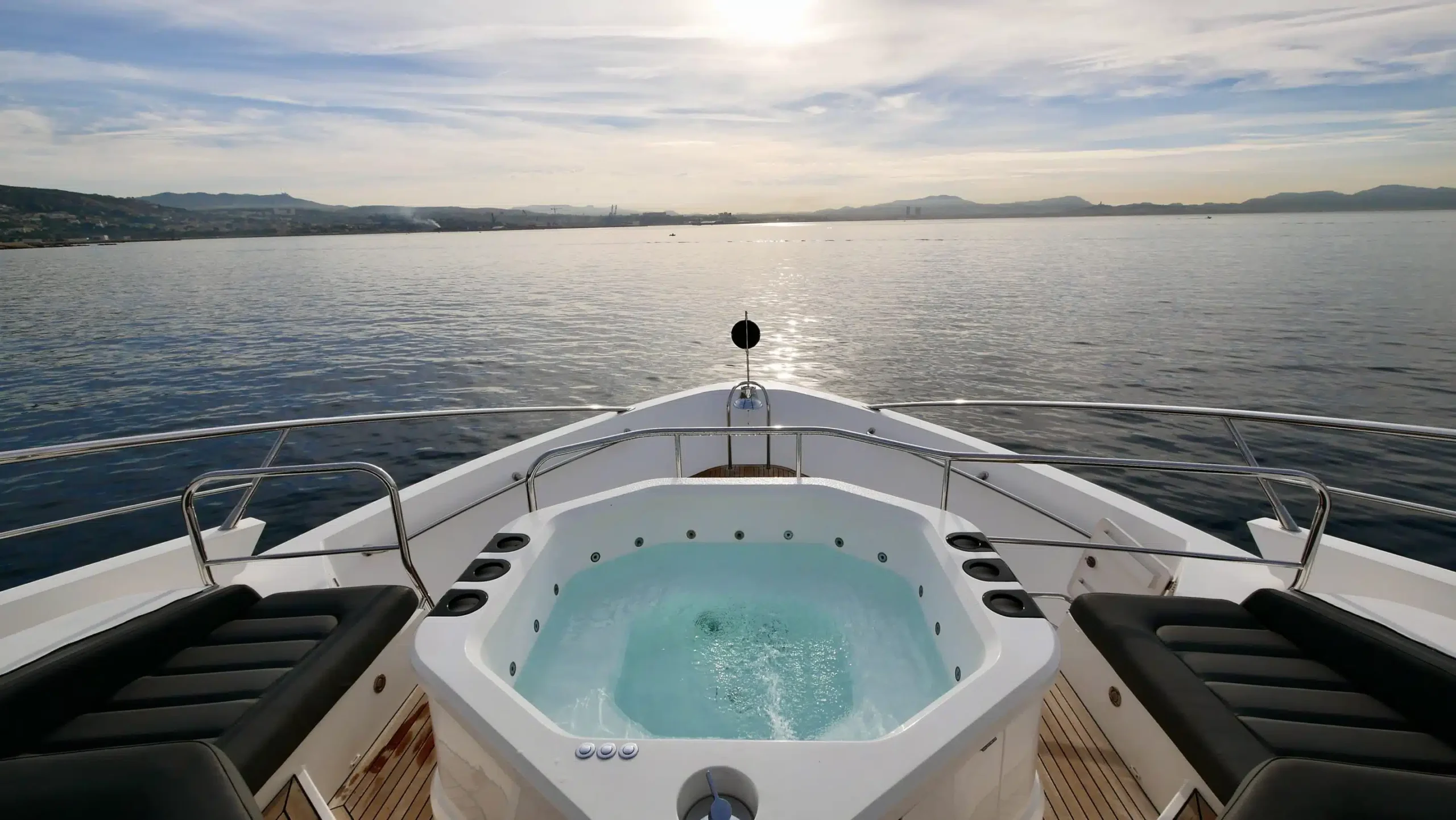 Un dels grans atractius del SURVIVOR 2 és el seu jacuzzi situat a proa, que ofereix un entorn idíl·lic per relaxar-se admirant l’horitzó. El flybridge espaiós, equipat per a àpats a l’aire lliure i moments de convivència, és el lloc ideal per gaudir d’un còctel davant la posta de sol o organitzar una recepció privada al mar.