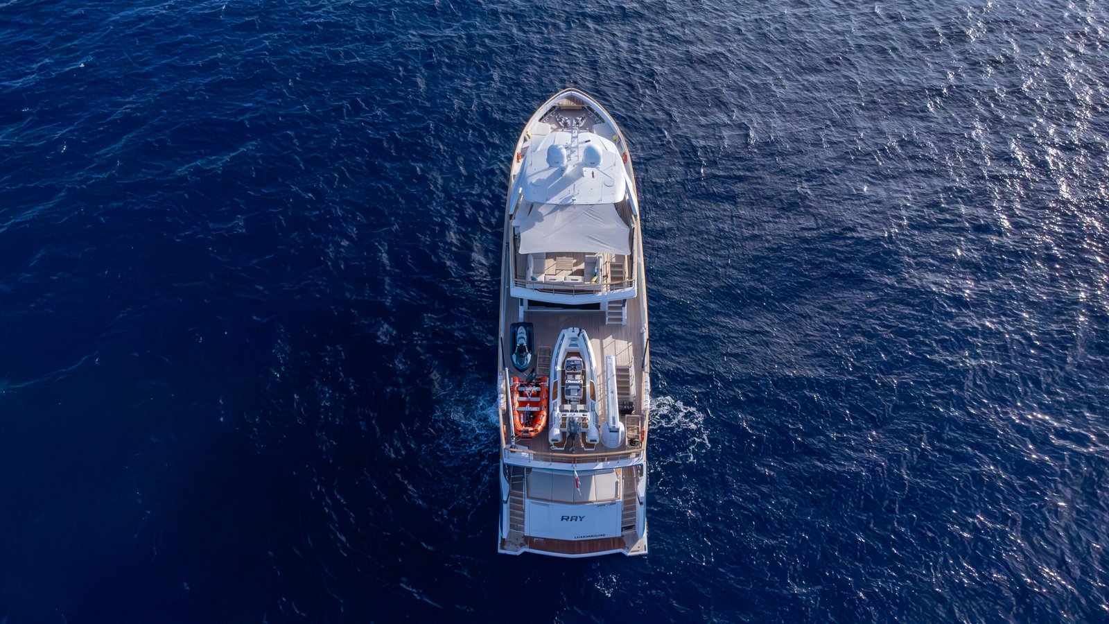 Il RAY è uscito dal cantiere nel 2025. Nessun refit in vista, nessun sistema obsoleto, nessuna finitura datata — tutto è al massimo livello tecnologico ed estetico attuale. I clienti che noleggiano il RAY beneficiano di un’esperienza equivalente a quella di un proprietario nella prima stagione di utilizzo.