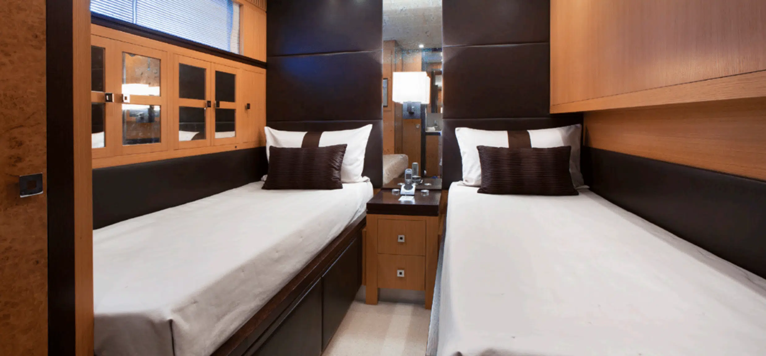 Bien que l’Eol B ne dispose pas d’hébergement pour la nuit, il propose quatre cabines haut de gamme pour la détente en journée. Accueillant jusqu’à 9 passagers en navigation, ce yacht offre un espace généreux et une atmosphère sophistiquée, idéale pour une escapade privée, une célébration exclusive ou une réunion professionnelle sur l’eau.