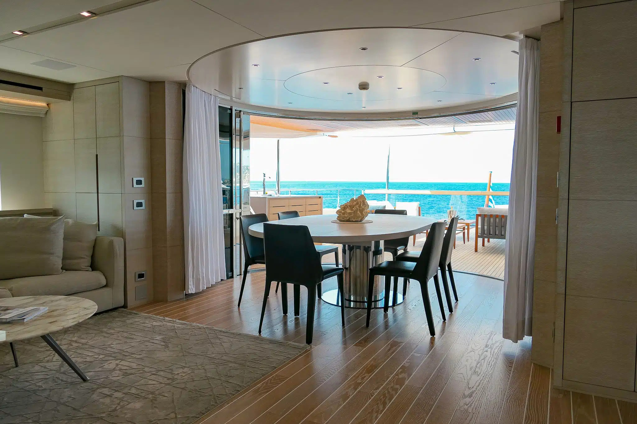 Le Tiny Wave peut accueillir jusqu’à 12 passagers en navigation et jusqu’à 70 personnes à quai, offrant un espace idéal pour des événements privés, réceptions ou séjours en mer inoubliables. Ses 5 cabines luxueuses offrent une atmosphère raffinée, parfaite pour le repos et la détente. À bord, un équipage professionnel de 6 membres veille à votre bien-être avec discrétion et efficacité.